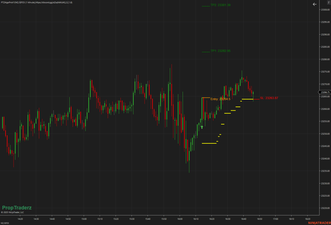 • Clean, Persistent Visuals: Entry, stops, and targets remain visible from the moment of signal until you exit.