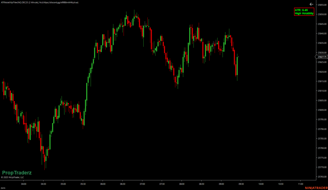 ATR Volatility Filter — Know When the Market Is Calm or Ready to Explode Volatility is the pulse of the market. When it beats fast, traders get opportunity — and risk. When it slows down, the game shifts toward patience and precision. Our new ATR Volatility Filter for NinjaTrader 8 gives you a simple, visual way to read that pulse directly on your chart. What It Does This lightweight indicator calculates the Average True Range (ATR) — the classic measure of market volatility — and displays a colored box on your chart showing the current ATR value and volatility state: 🟢 Low Volatility — the market is quiet, ideal…